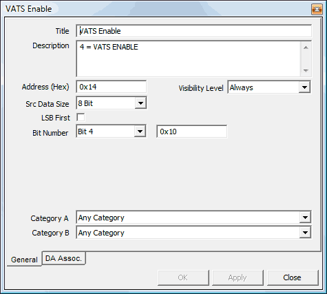 Flags (sometimes simply called "bits") represent a single bit within a byte in the bin. Flags are often used as "switches" for functionality within the car's ECM program. For instance in the screenshot above, a single bit enables or disables VATS (Vehicle Anti-Theft System). If this bit is unchecked in the flag editor, VATS will not function, allowing the car to start without the embedded "chip" in the key.